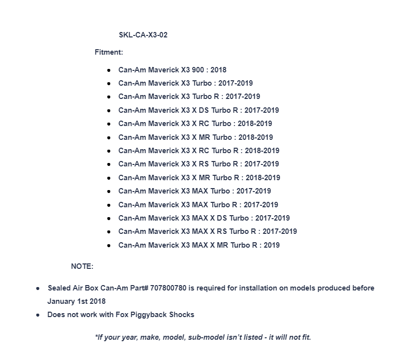 - Sealed Air Box Can-Am Part# 707800780 is required for installation on models produced before January 1st 2018