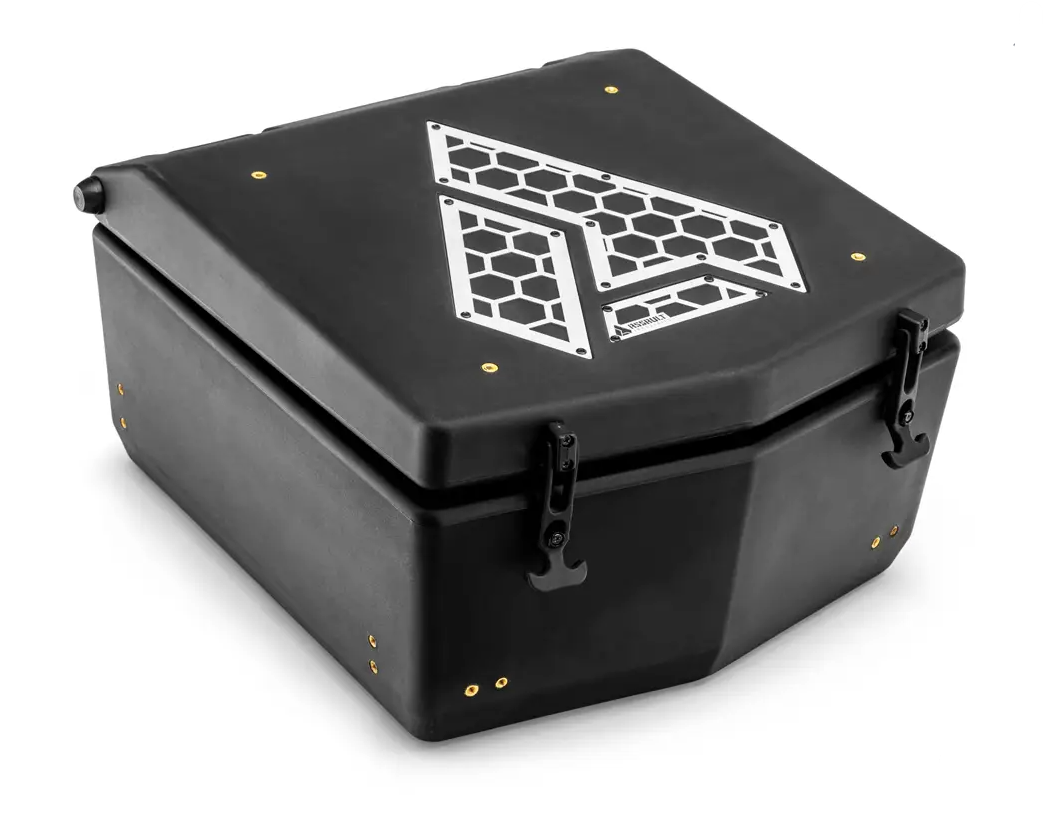 Imagine the most perfect weekend of riding—blue skies, warm weather, and family. The only thing that would make the weekend any better is a little more convenience. That’s where Assault Industries’ Cooler and Cargo Box comes into play. This accessory allows you to pack cold drinks and sandwiches for a long day of riding. Or it can be used as a dry storage location for parts, tools, clean clothes, and more. This box mounts to your machine with steel brackets so it won’t budge no matter how crazy you get on the trail. And its flashy design will match your RZR perfectly.