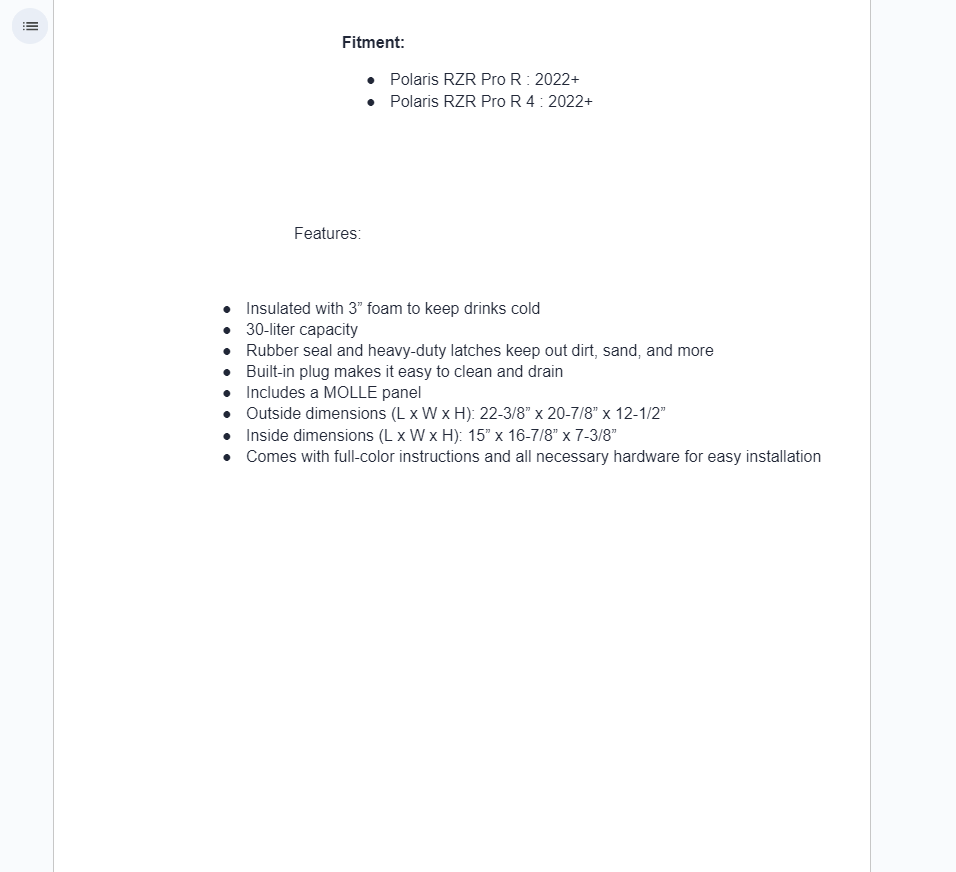 Navigating tight trails is exhilarating—the last thing you should be worried about is your cooler. Thats’ why this one was designed to mount directly to your bed using heavy-duty brackets and durable thumb screws. If you need the bed space, no problem—remove the thumb screws, then the box, and you have access to your RZR’s bed again.
