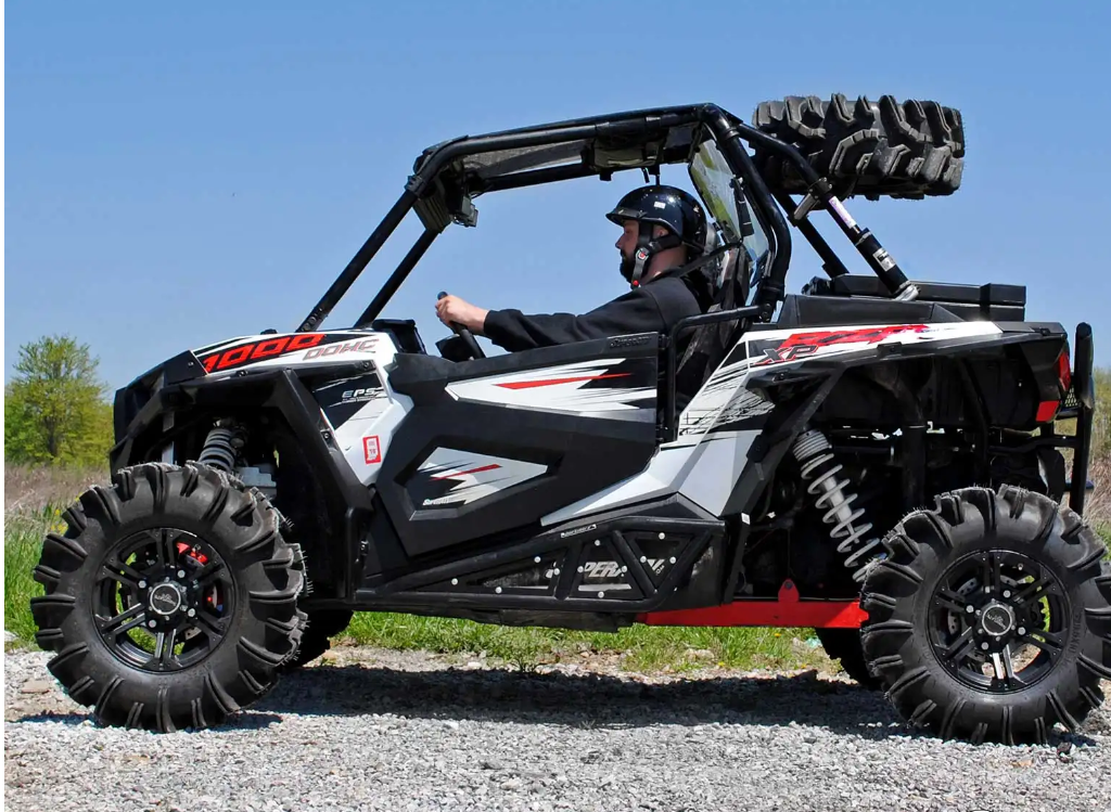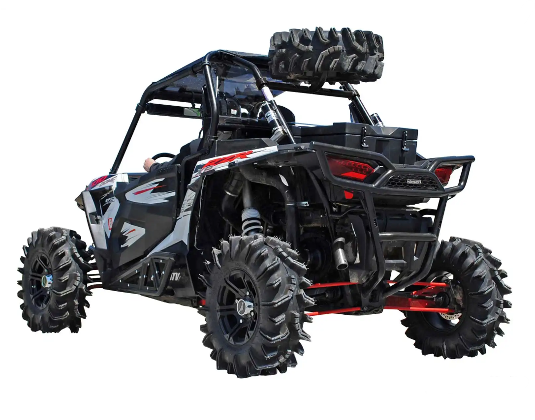Don’t risk riding without a spare! SuperATV’s RZR XP 1000 spare tire carrier is the perfect addition to give you peace of mind while cruising the trails. Designed with style and performance in mind, we’ve carefully positioned the spare tire carrier to ride higher than the driver’s line of sight. This single piece design mounts directly to the factory roll cage and can carry up to a 30″ tire. Utilizing our slip-resistant clamps, there is no need to worry about rattle or movement from the carrier while riding. Unlike others, SuperATV’s RZR 1K spare tire carrier provides the rider with full access to the bed without the hassle of having to swing open, or remove the mount. And, there’s still plenty of room for your SuperATV Cooler / Cargo box.