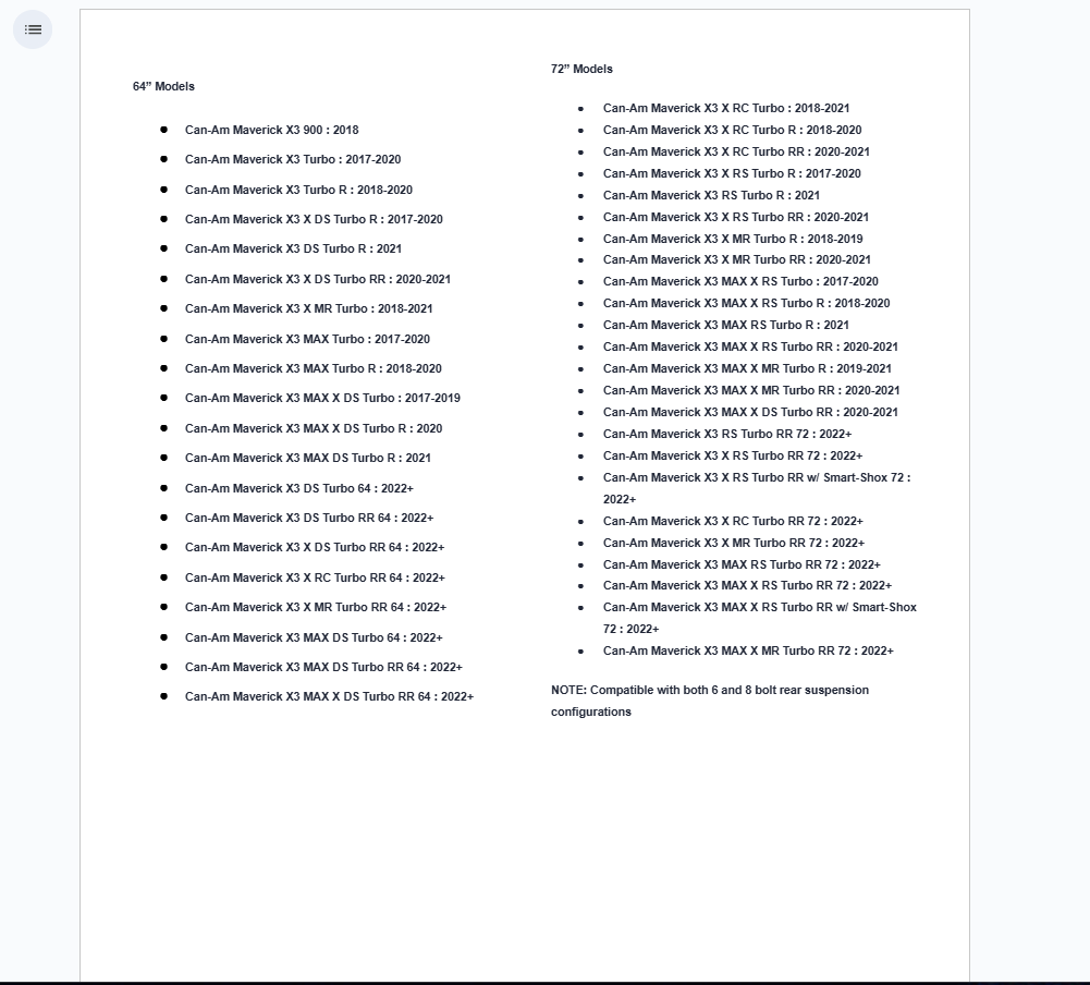 - Can-Am Maverick X3 MAX Turbo : 2017-2020