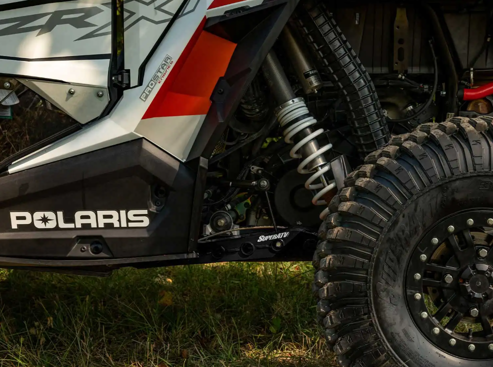 Your Polaris RZR XP is built for wild fun and hard rides. But it doesn’t seem like it when your rear suspension gets banged up after a day of cruising over rough trails. Upgrade your suspension with SuperATV’s High Clearance Rear Trailing Arms. They give you unparalleled strength, enhanced ground clearance, and iconic style. They’re built to take harder hits and let you put the pedal down with confidence.