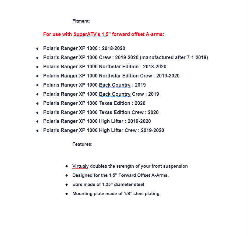 For use with SuperATV’s 1.5″ forward offset A-arms: