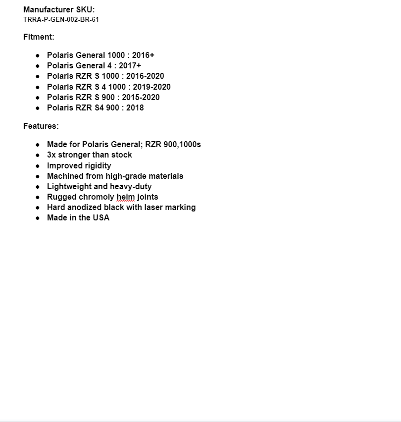 Assault Industries UHD 7075 Long Travel + 5 Tie Rods For Polaris General/ 900S/1000S