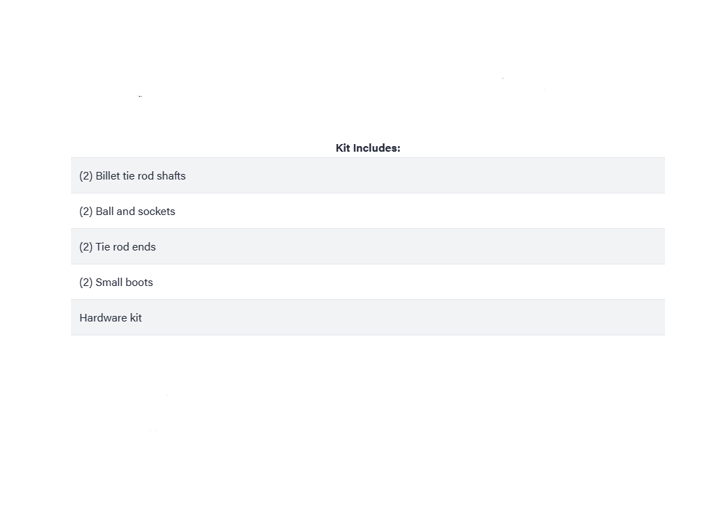 At the end of the day, it doesn’t matter how flashy this kit is if it snaps on the first turn. Lucky for you, the rods in this kit are built with 6061-T6 billet aluminum, making them incredibly strong and lightweight. You also get oversized 14 mm heim joints and inner ball and sockets that are made with chromoly steel. Every bit of this kit is packed with strength to reduce wear and eliminate shaky steering.