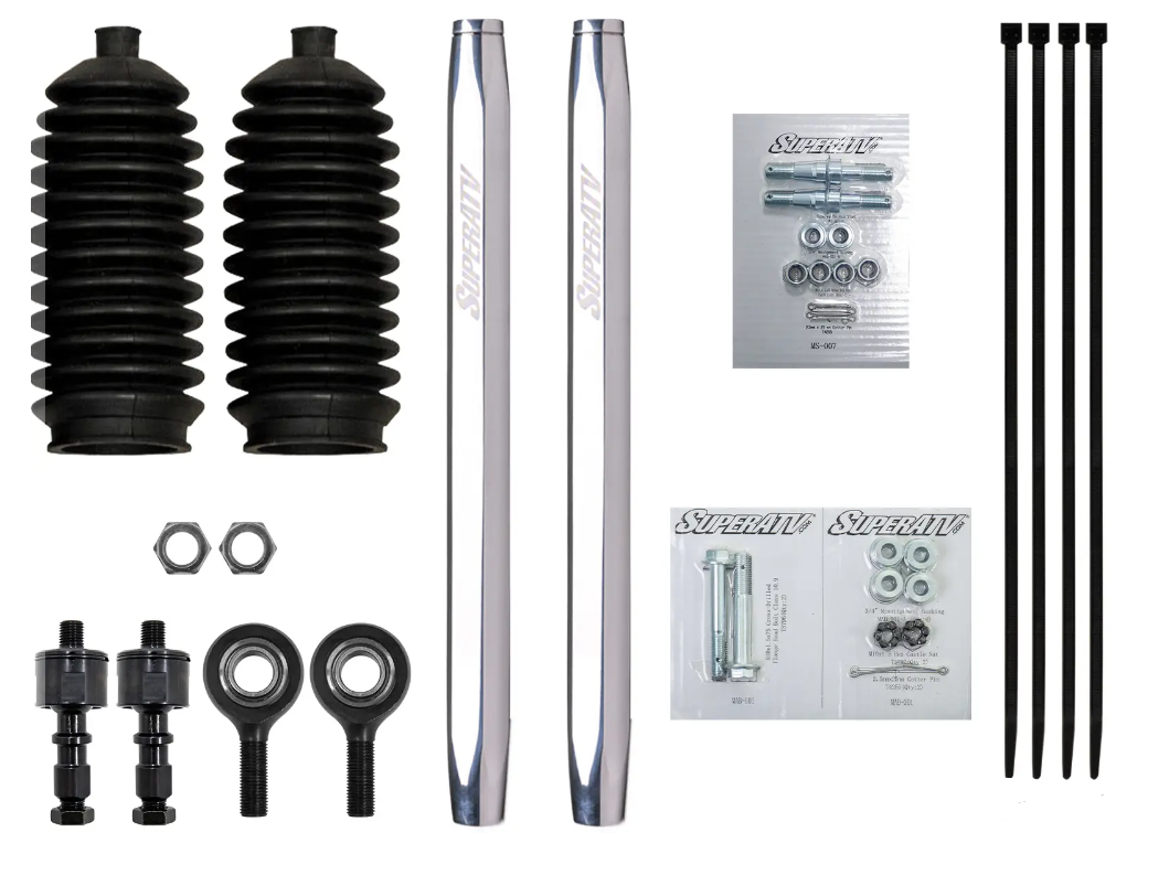 This kit comes with everything you need (we even provide zip ties!) so you can get it installed and get riding in no time. It bolts right up to your SuperATV or stock rack and pinion and steering knuckle too. What’s that? You want to adjust your toe, you say? It’s never been easier: just loosen the jam nuts and turn the rod. You can adjust your side-by-side’s toe at installation or on the fly.