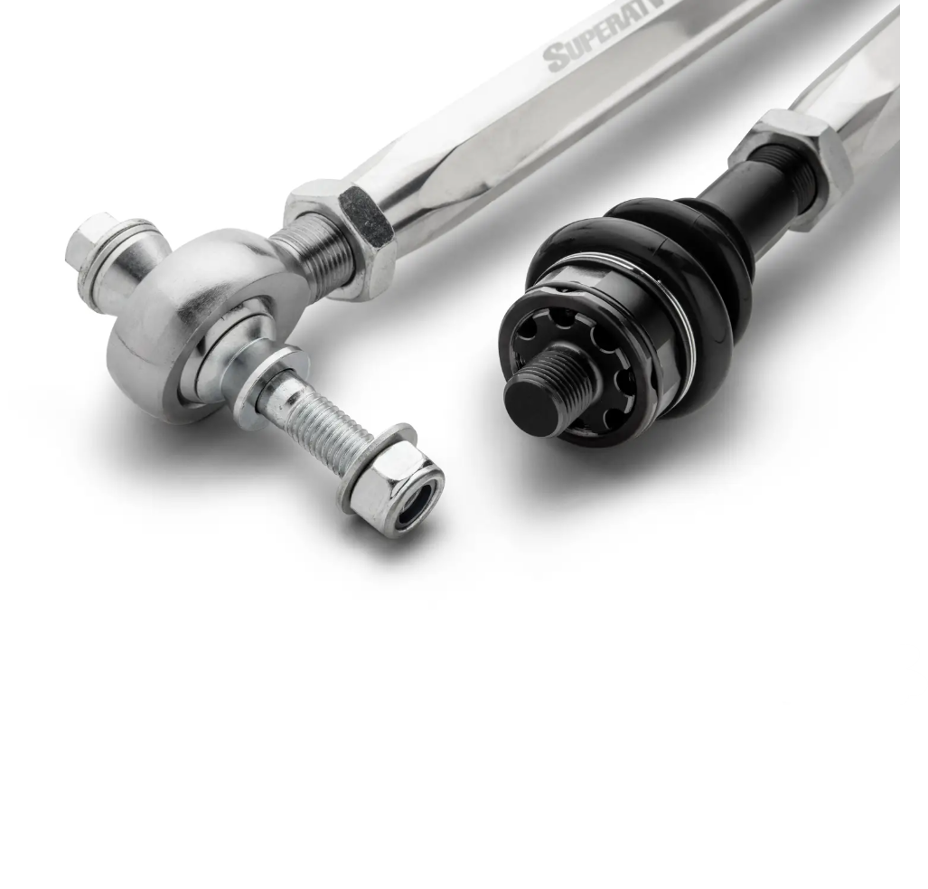 We know you’d rather be out riding than running back and forth to the hardware store. That’s why we include all the parts you need right in the box. Plus, these tie rods bolt right to your SuperATV or stock rack and pinion and steering knuckle for simple installation. We’ve also designed the toe to be adjustable on the fly by just turning the shaft, so you don’t need to undo all your hard work to make minor changes.