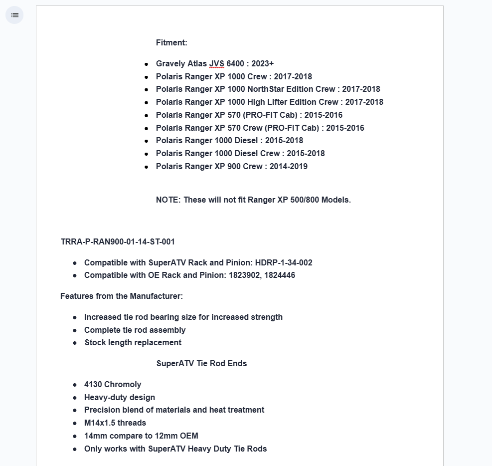 At SuperATV, we understand the need for bulletproof strength and unmatched durability. To ensure an exceptional product, we’ve increased the size of our tie rod ends, added misalignment bushings, and finished it with the optimal blend of materials and heat treating. Our high strength 4130 Chromoly end is oversized allowing for an increased bearing surface area, leaving you with all-out strength, durability and reliability.