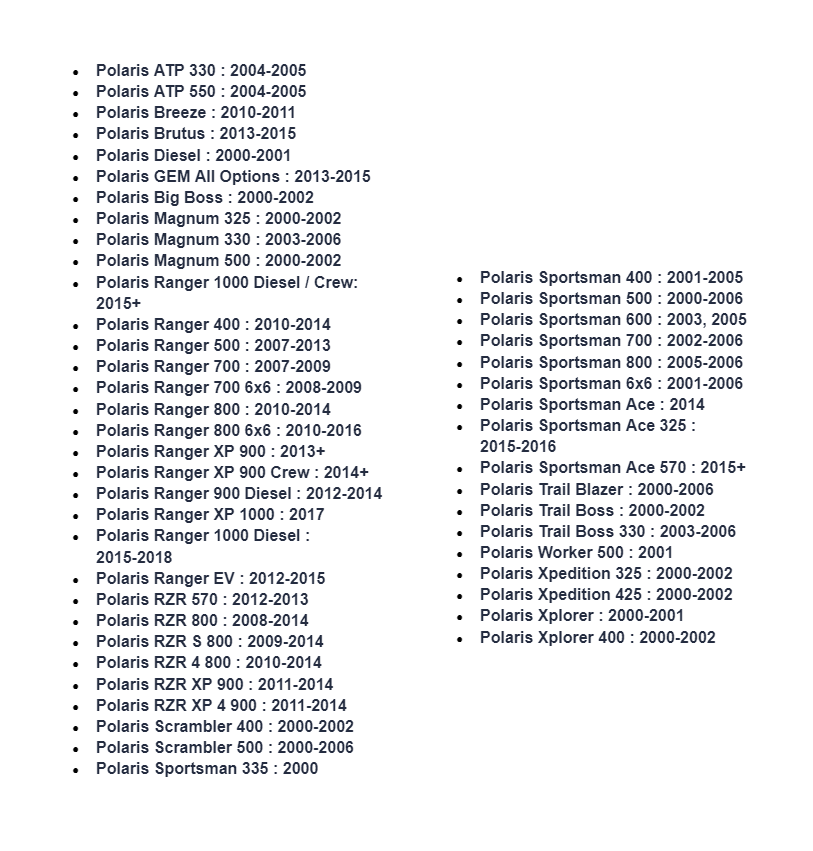 - Polaris Ranger 1000 Diesel : 2015-2018