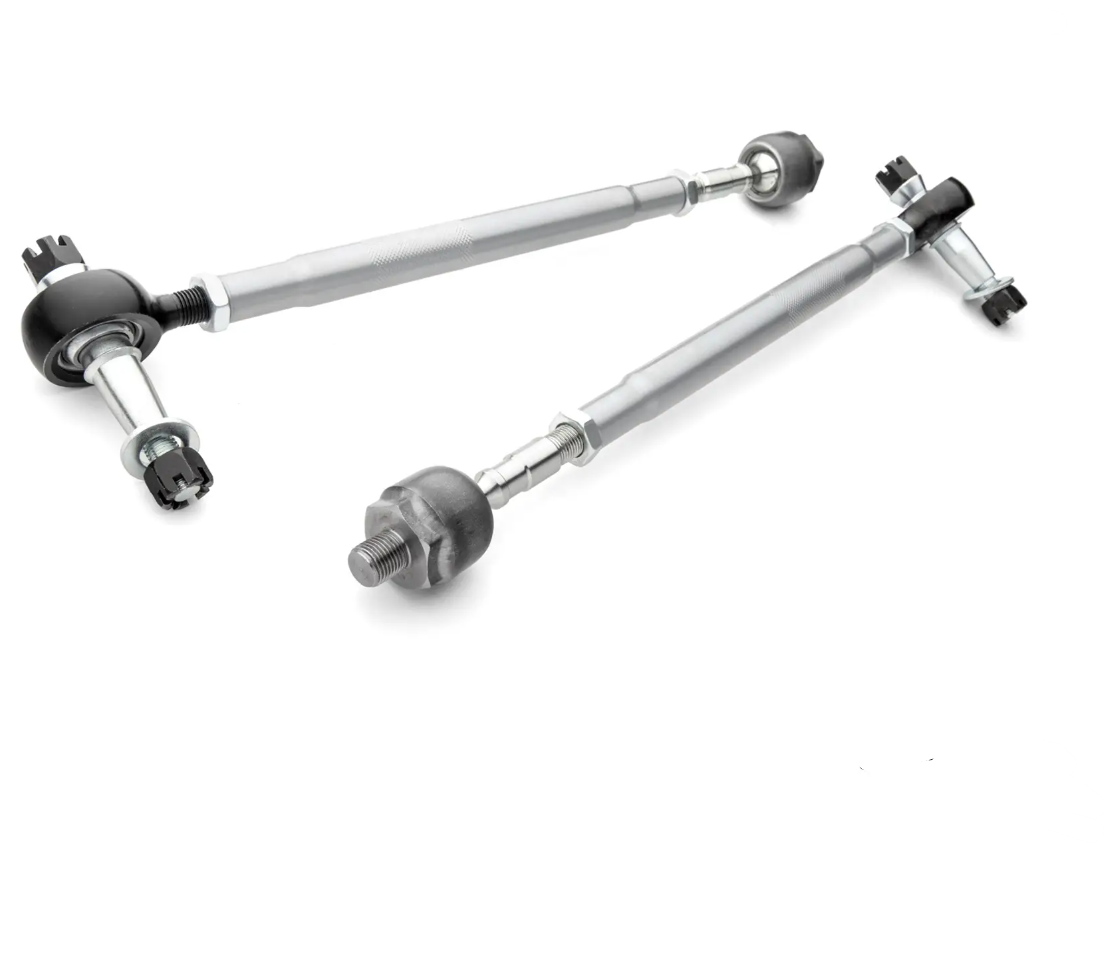 This kit uses beefy 14 mm tie rod threads and 16 mm rack threads to make the weakest points as strong as possible. The inner and outer tie rod ends are made with chromoly steel for extreme durability too.