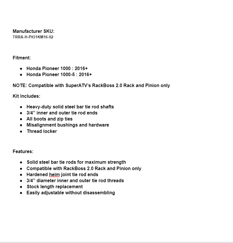 NOTE: Compatible with SuperATV’s RackBoss 2.0 Rack and Pinion only