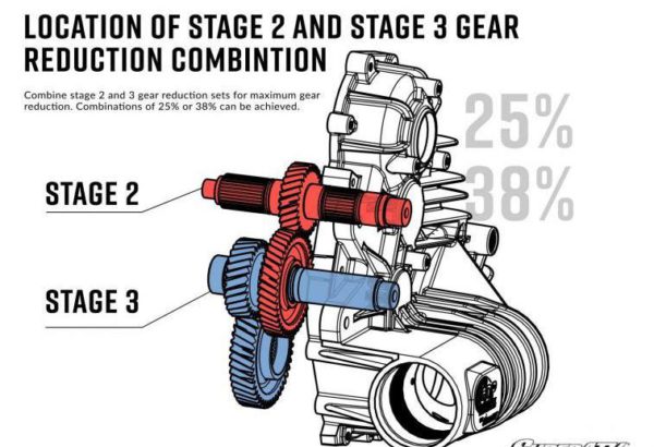 Add heavier upgrades and bigger tires, and you’ll need that 25% . A gear reduction kit from SuperATV will help you get your rig’s power back. What are you waiting for? We have the key to explosive acceleration and irresistible power right here.