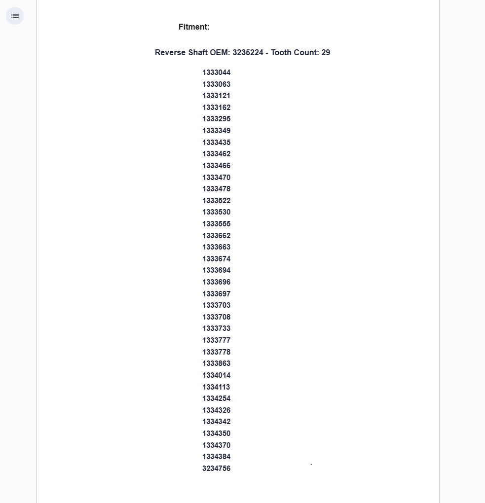Reverse Shaft OEM: 3235224 – Tooth Count: 29