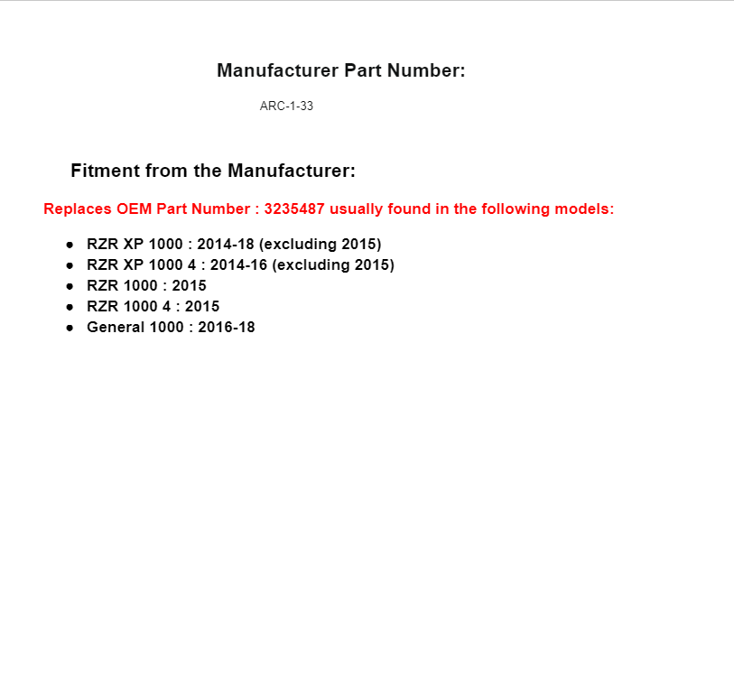 - RZR XP 1000 : 2014-18 (excluding 2015)