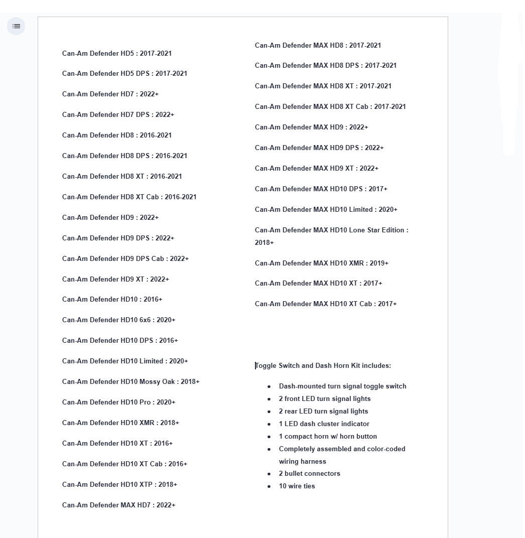- Can-Am Defender MAX HD 10 XT Cab : 2017+