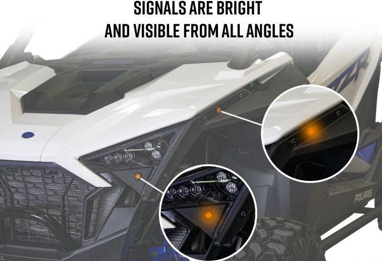 Riding your side-by-side on the road can be risky business. It’s dangerous to not be able to indicate your intentions to other drivers, and you can get a hefty fine too. Install SuperATV’s Plug & Play Turn Signal kit on your Polaris RZR PRO XP to get safer, and get legal.
