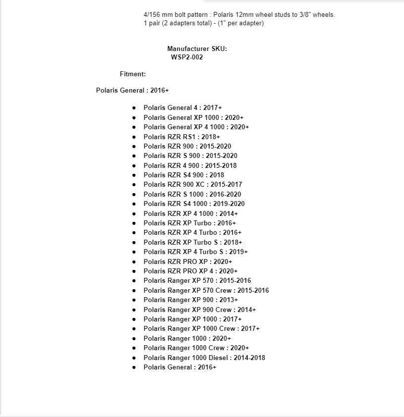4/156 mm bolt pattern : Polaris 12mm wheel studs to 3/8″ wheels.