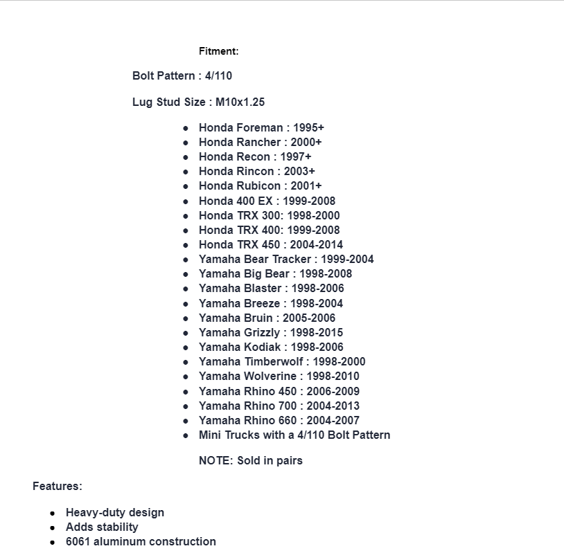 Give your machine increased stability with a new pair of Wheel Spacers from SuperATV. Constructed of 6061 aluminum, these spacers are Built for BattleTM and guaranteed to last!