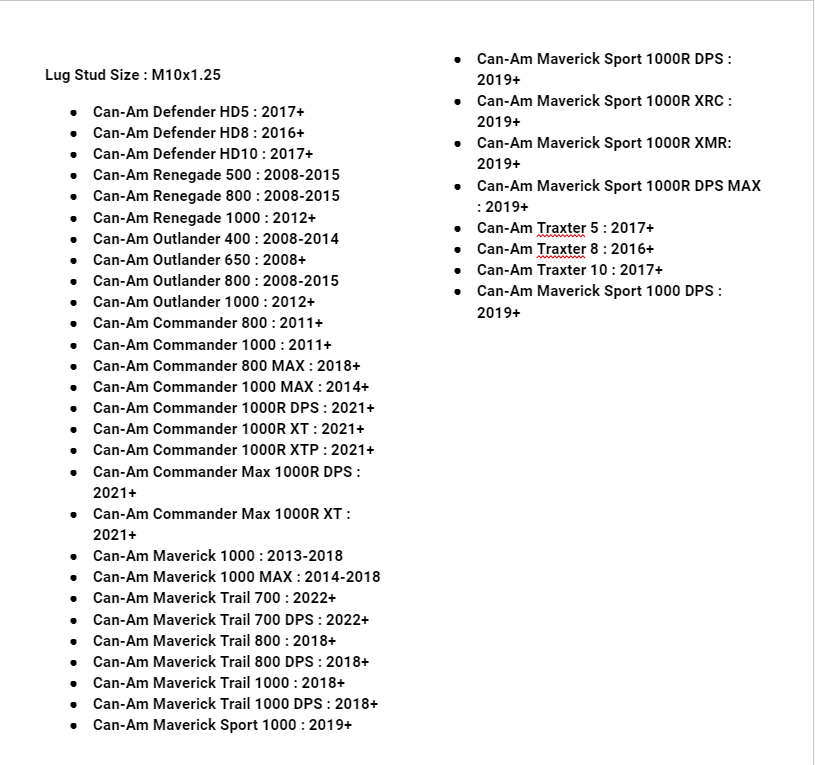 - 4/136 mm bolt pattern—fits most Can-Am models