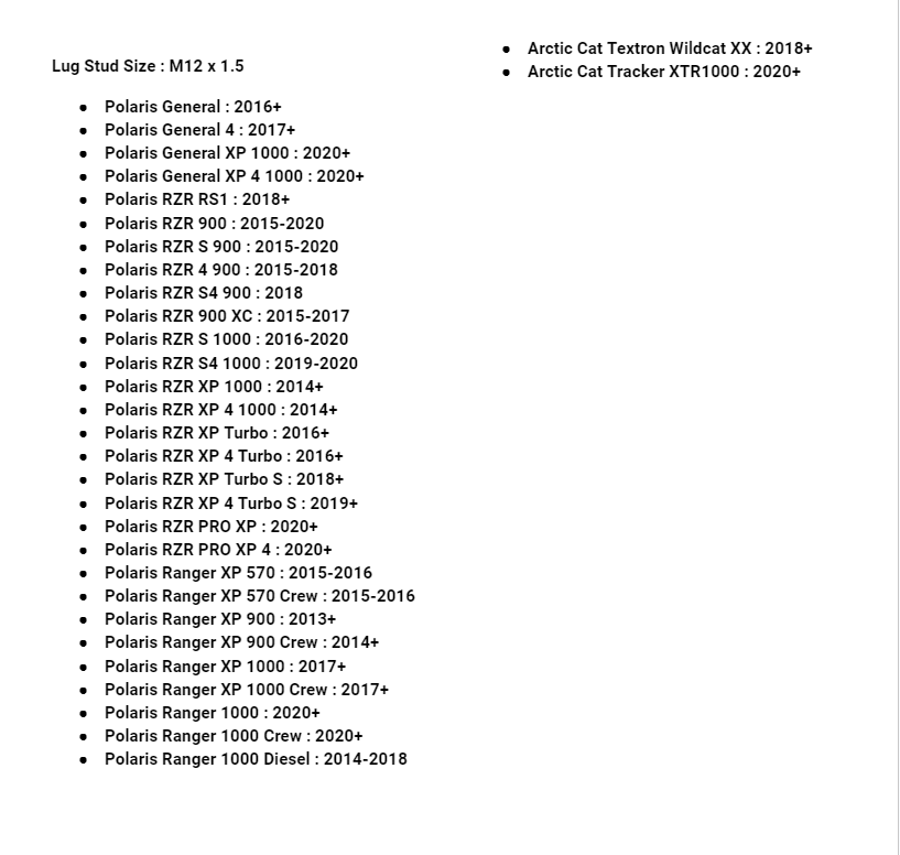 - Polaris RZR 900 XC : 2015-2017