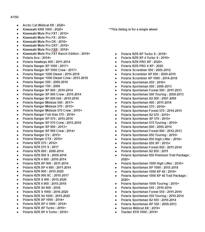 | Polaris | RZR PRO XP 4 | -- | 2020 | |