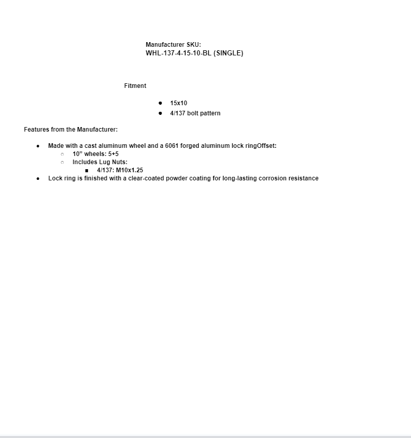 - Made with a cast aluminum wheel and a 6061 forged aluminum lock ringOffset: