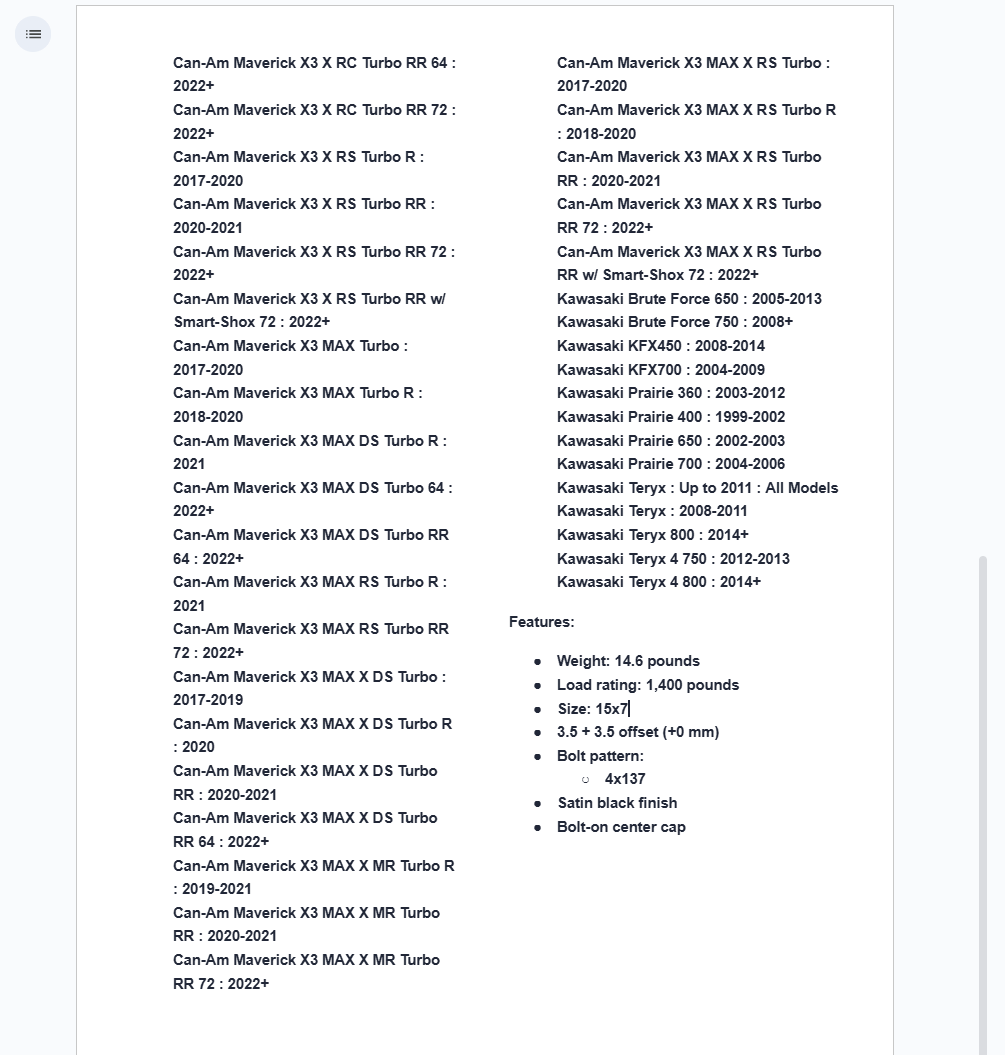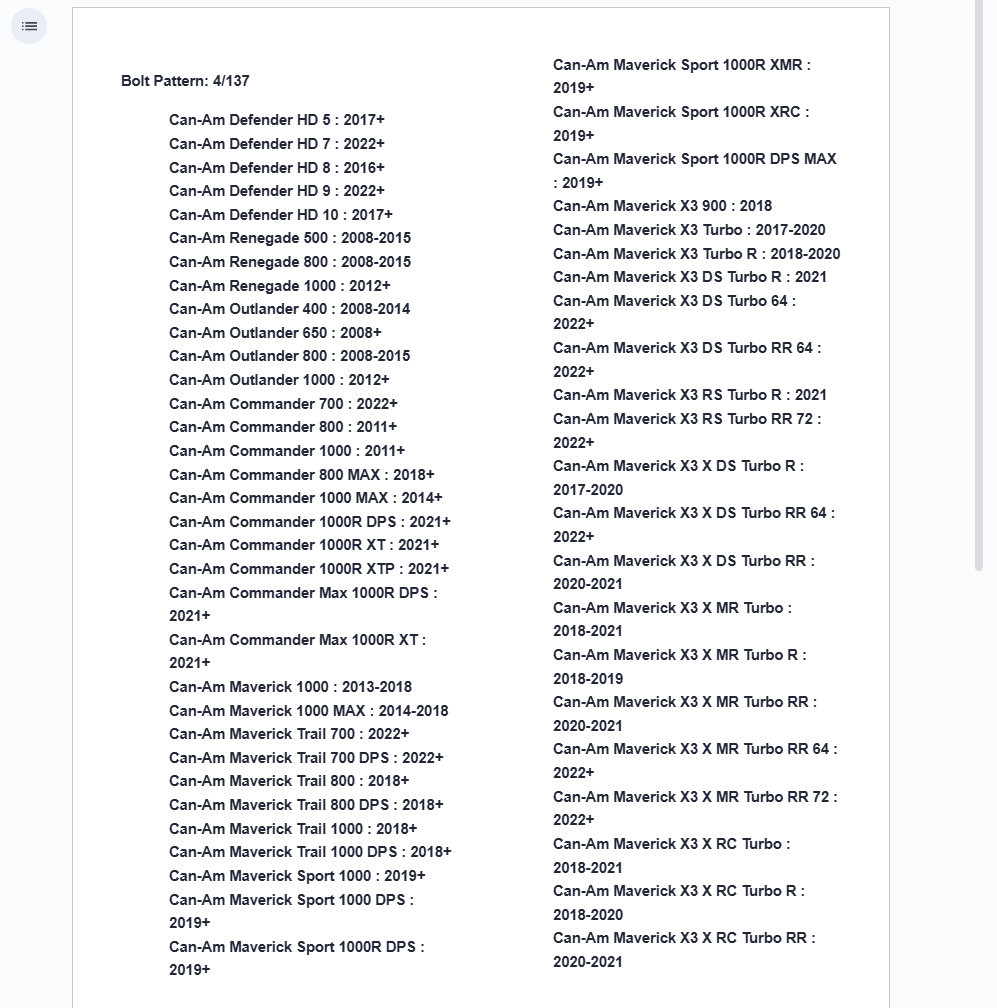 - Can-Am Maverick X3 MAX Turbo : 2017-2020
