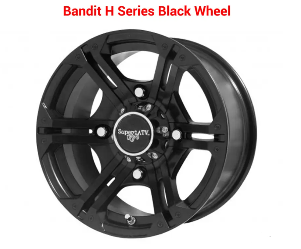 Show off your ride with SuperATV’s Bandit Wheels! These 7” wide wheels look great with a six double-spoke design and a black finish. These wheels feature an ideal 4.5” back-spacing so they stick out 2.5” past the hub. They also each come with a metal valve stem and four lug nuts so you can get them installed quickly and easily.