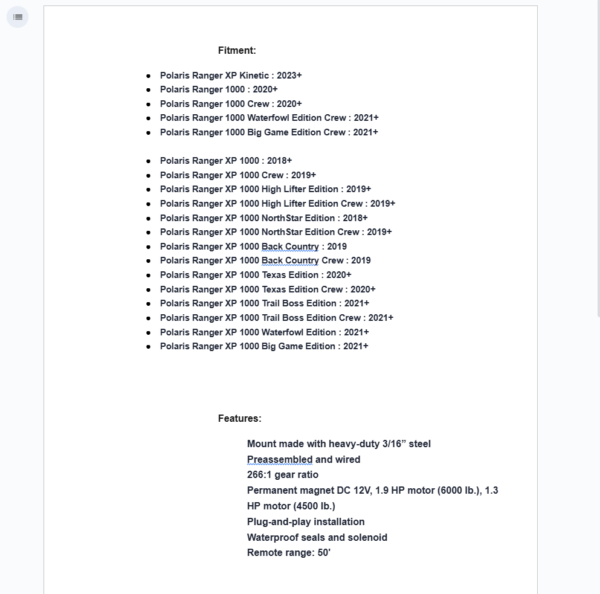 Comes with Every Winch Part Your Ranger Kinetic Needs
