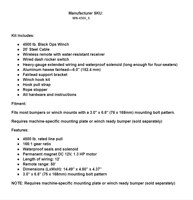 Requires machine-specific mounting plate or winch ready bumper (sold separately)