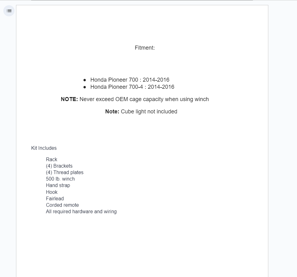 | Honda | Pioneer 700 | SXS700M2 | 2014 | |