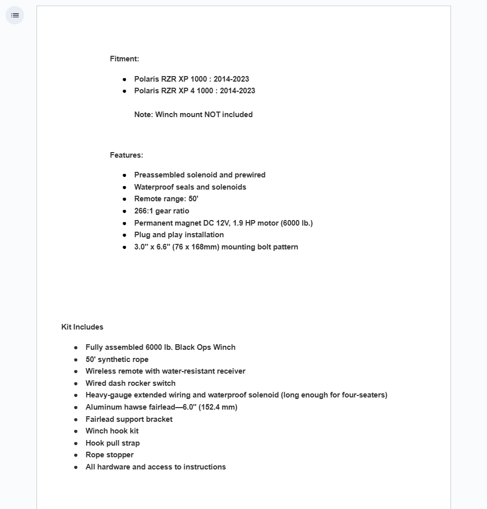 What do you need? A 6000 Lb. Black Ops Winch? Its quick-install, water resistant, and highly dependable. This heavy-duty winch come with a wireless remote and 50-foot synthetic rope.