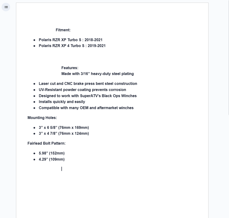 Even the most highly-skilled riders find themselves stuck every now and then. That’s why it’s always a good idea to be prepared with a top-quality winch backed by a top-quality winch mount. When you install SuperATV’s Winch Mounting Plate on your Polaris RZR XP Turbo S, you’re letting everyone else know that you’re prepared for anything. It’s designed specifically to work with our ultra-strong Black Ops Winches. The next time you bury it in mud, you can count on our winch mounts to get you unstuck.