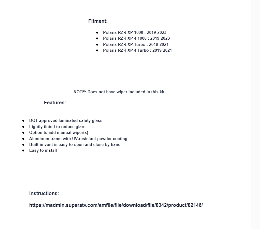 Stay protected on the trail by equipping your Polaris RZR XP 1000 with Assault Industries’ Glass Windshield. It’s DOT approved, has a wide-open viewing angle, and includes a manual wiper and vent. This windshield is the upgrade your XP 1000 needs to give you the comfortable ride you want.