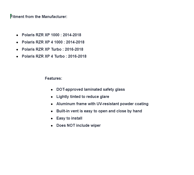 Stay protected on the trail by equipping your Polaris RZR XP 1000 with Assault Industries’ Glass Windshield. It’s DOT approved, has a wide-open viewing angle, and includes a vent. This windshield is the upgrade your XP 1000 needs to give you the comfortable ride you want.