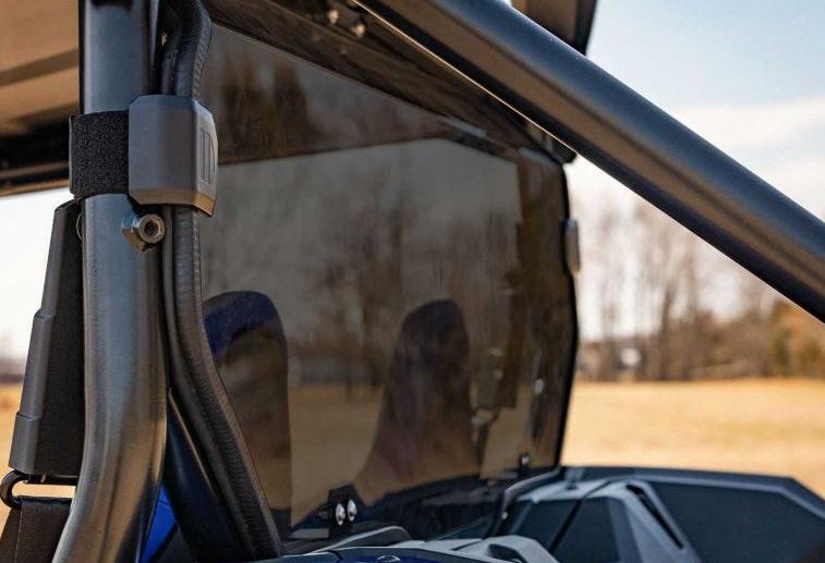 All SuperATV windshields are made using 1/4” polycarbonate, which is 250 times stronger than glass. Every piece of this windshield is designed with durability and longevity in mind, from the CNC-cut polycarbonate to the powder-coated hardware. This windshield is precision cut to match the curves of your machine, and it attaches to your frame using heavy-duty clamps for a rattle-free fit.