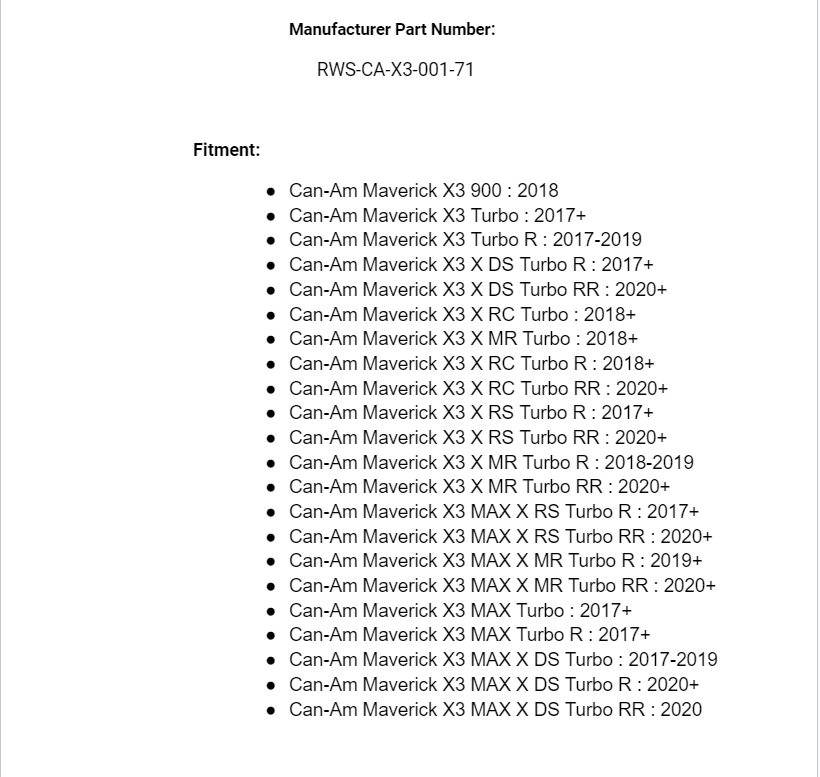 | Can-Am | Maverick X3 Max RR | 4x4 RS Turbo DPS | 2022 | |