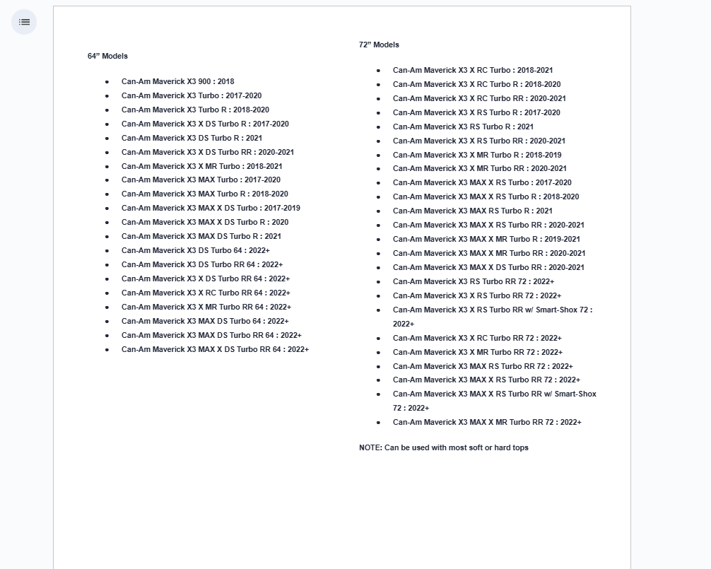 - Can-Am Maverick X3 X RC Turbo R : 2018-2020