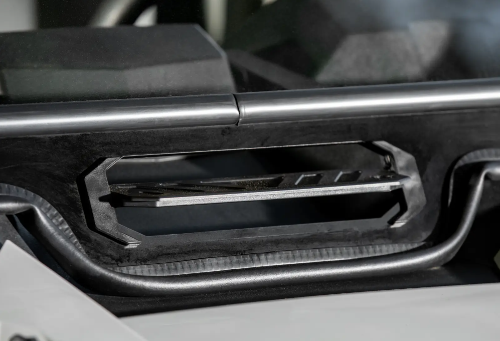 We positioned the built-in manual wiper on the driver’s side. Why? So you can actually use it. We also include a adjustable vent so you can control the airflow in the cab at all times.