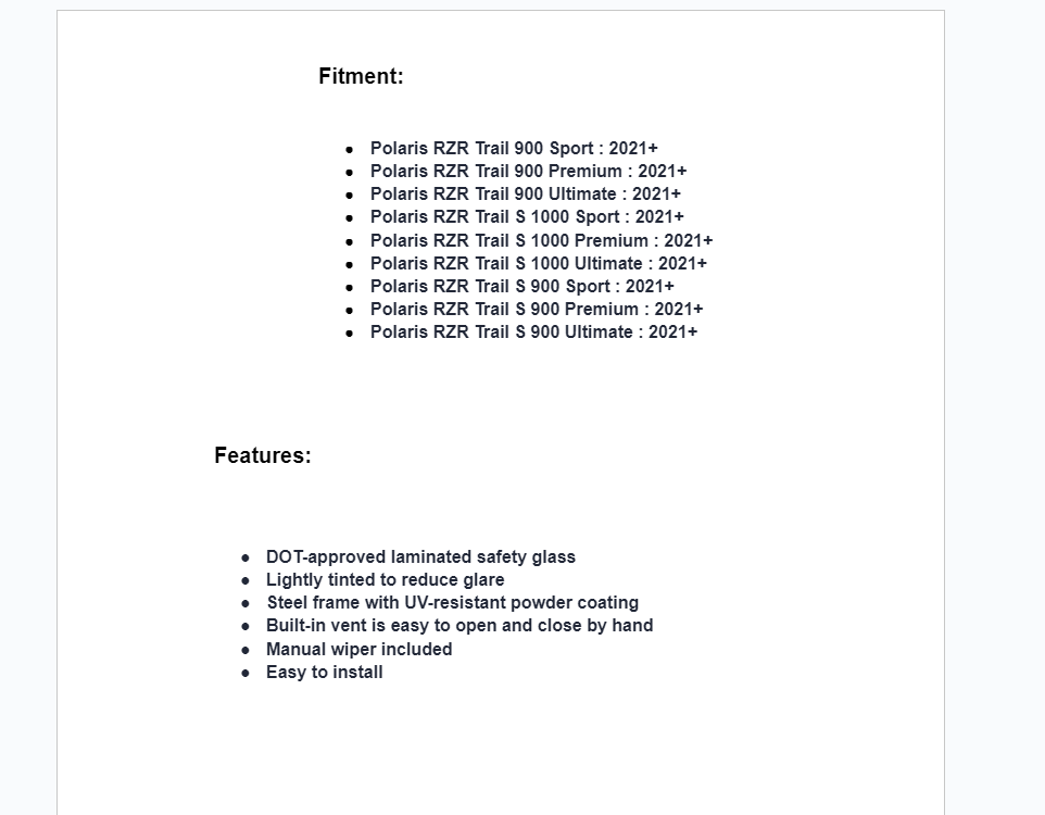 Protect yourself and your copilot from dust and debris on the ride with SuperATV’s Polaris RZR Trail 900 Glass Windshield. It’s made with DOT-approved laminated safety glass for next-level strength and durability. We include our easy-to-use BreezeRite vents too, so you get total control over airflow.