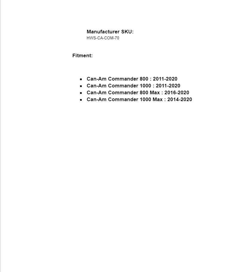 - Can-Am Commander 800 Max : 2016-2020
