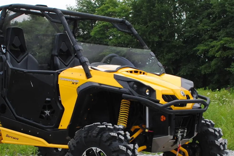 Help protect you and your passenger from sticks and other flying debris while blazing the trail with a SuperATV windshield – the best off-road windshield on the market. With many protection and tint options to choose from, each windshield is a super tough polycarbonate construction with a bottom seal that’s contoured to your ride’s design. Our 1/4 hard coated abrasive resistant material is much stronger than your average UTV windshield. We’ve also beefed up the scratch resistance by hard coating this style windshield on both sides for years of use.