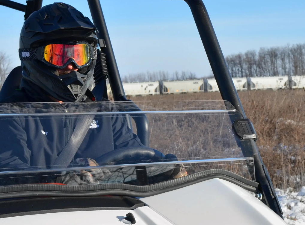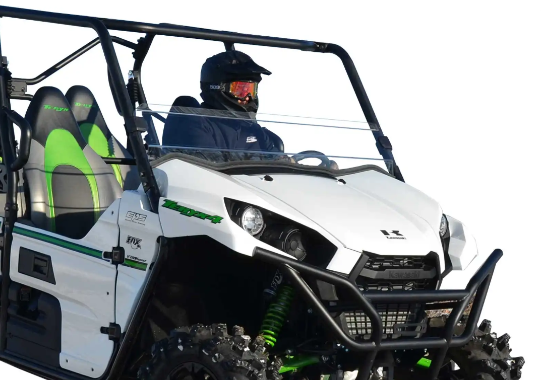 Install a SuperATV Polycarbonate Half Windshield on your Kawasaki Teryx to block the wind but keep the open-air feel you love. Whether you get clear, dark tinted, or hard coated, our half windshield is designed to keep the full force of the wind out of your face by diverting it up. That means every ride is more comfortable, and you get fewer bugs in your teeth.