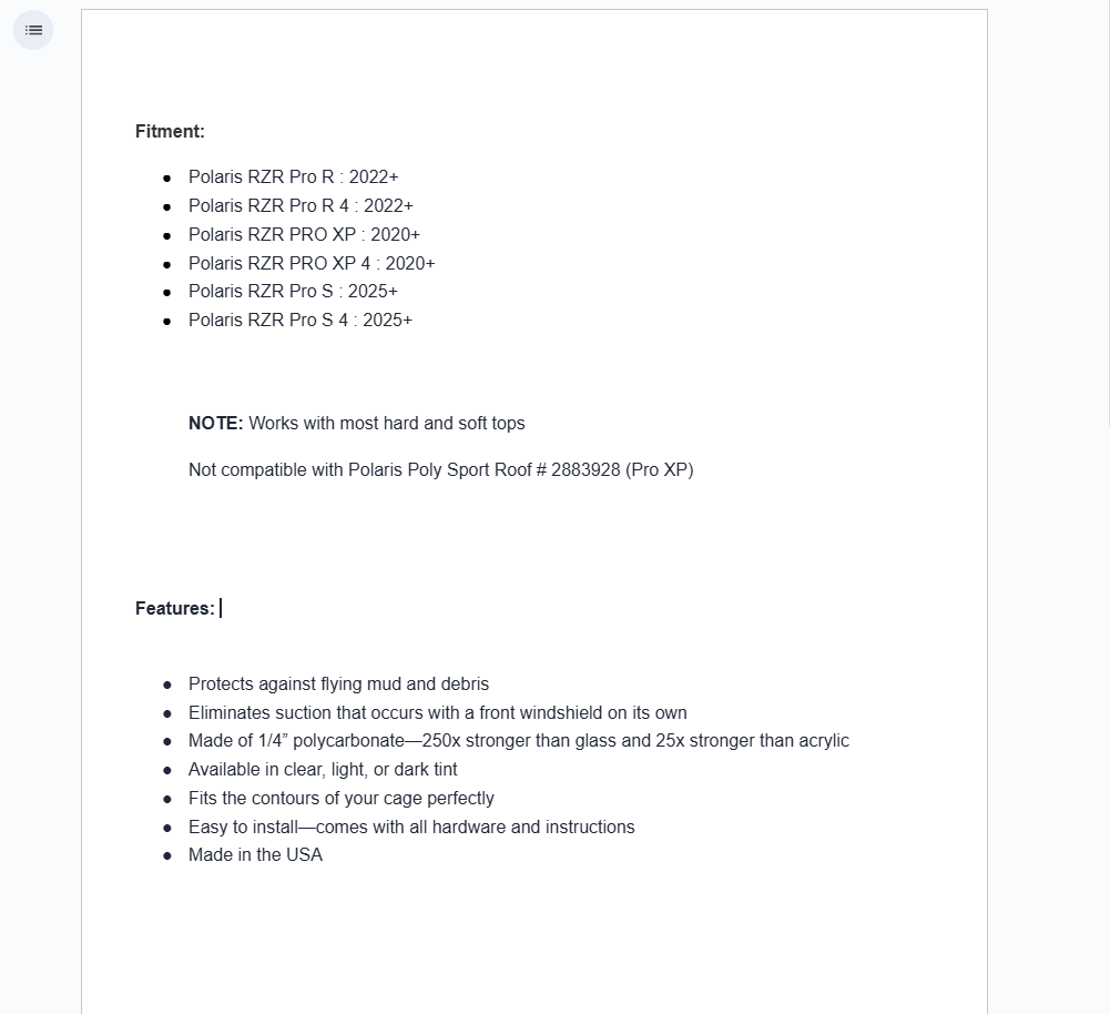 - Not compatible with Polaris Poly Sport Roof # 2883928