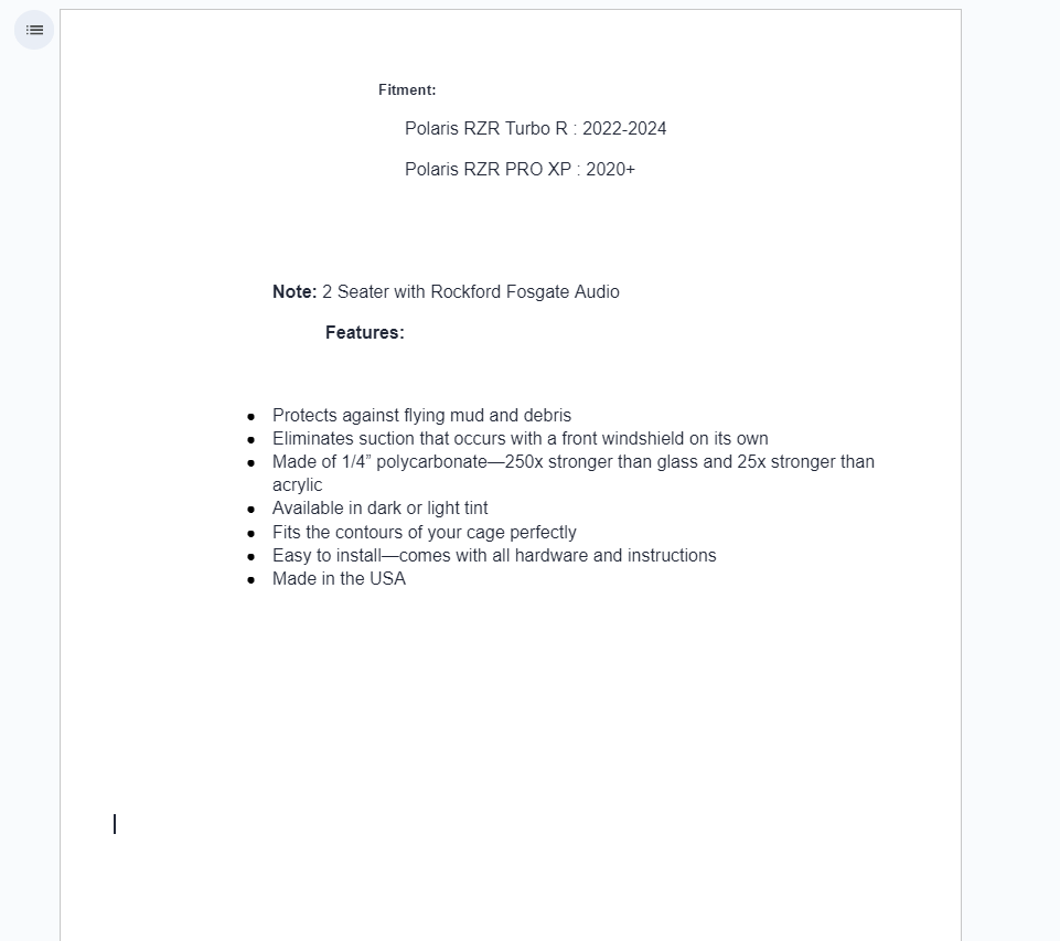 This RZR Turbo R windshield is made with top-notch parts that are built to last. Our beefy clamps ensure a tight fit to your machine. And the heavy-duty seals keep air and moisture out. It’s super easy to install, so you’ll be ripping on the trails in your RZR Turbo R in no time.