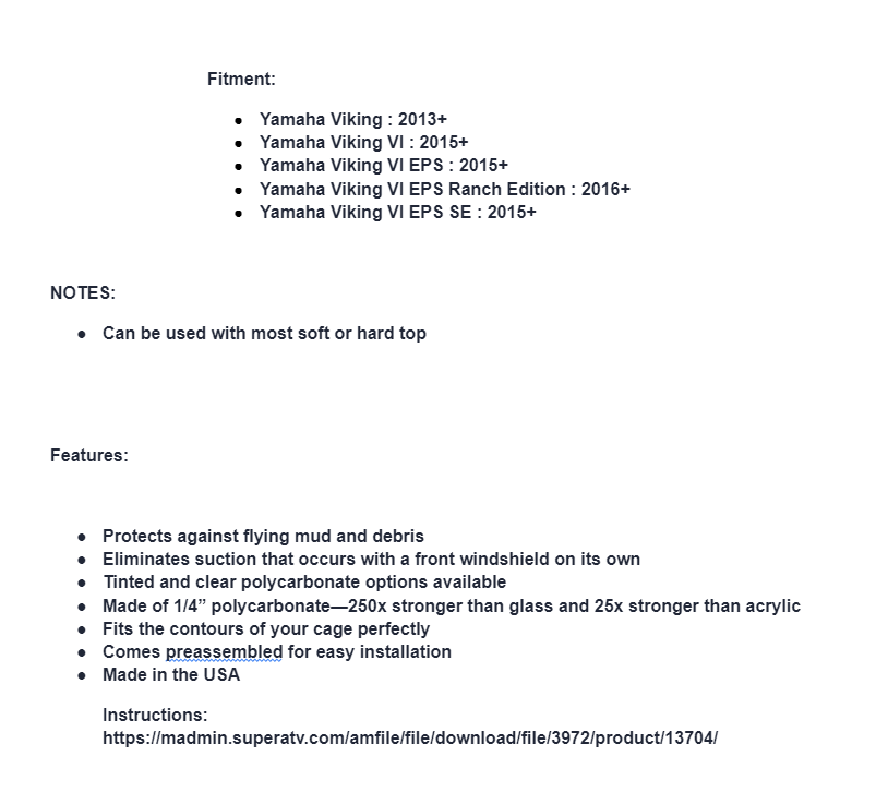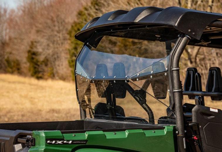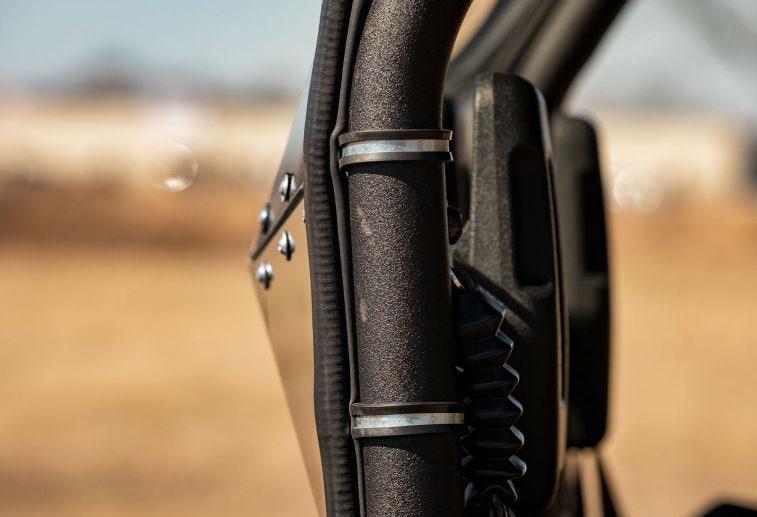 All SuperATV windshields are made using 1/4” polycarbonate, which is 250 times stronger than glass. Every piece of this windshield is designed with durability and longevity in mind, from the CNC-cut polycarbonate to the powder-coated hardware. This windshield is precision cut to match the curves of your machine, and it attaches to your frame using heavy-duty clamps for a rattle-free fit.
