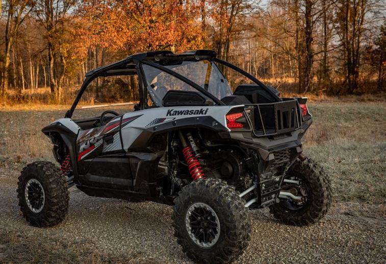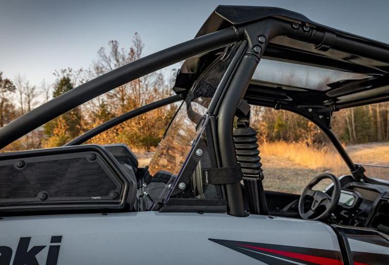 We know what you’re thinking. Is a rear windshield really necessary? The answer: yes. If you like to get a little wild but also love the idea of not having to shower immediately after your ride, adding a SuperATV Rear Windshield to your Kawasaki Teryx KRX 1000 is a must. It protects you from gunk that gets thrown up by your back tires, and also stops that annoying suction effect that happens when you run a front windshield by itself.