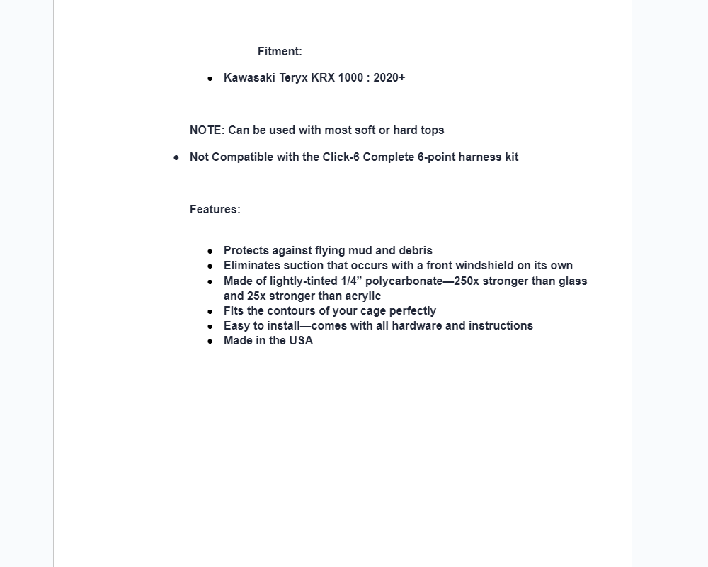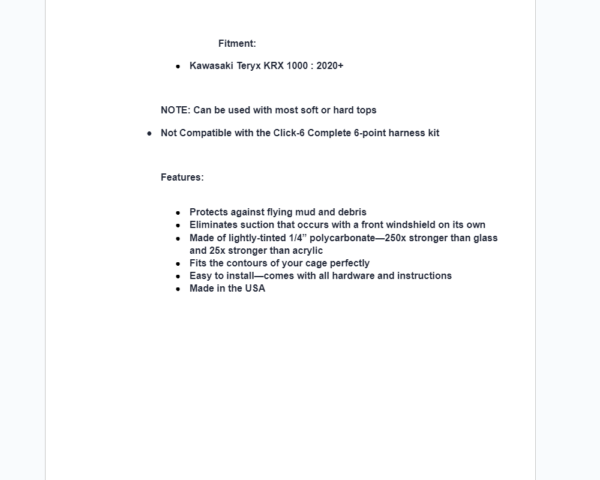 From the polycarbonate sheet to every little piece of hardware, this KRX windshield just screams “quality.” Heavy-duty clamps, straps, and bulb seals keep it firmly in place, giving you a perfect and rattle-free fit. Each component is built to last and simple to use, which makes installation a breeze.