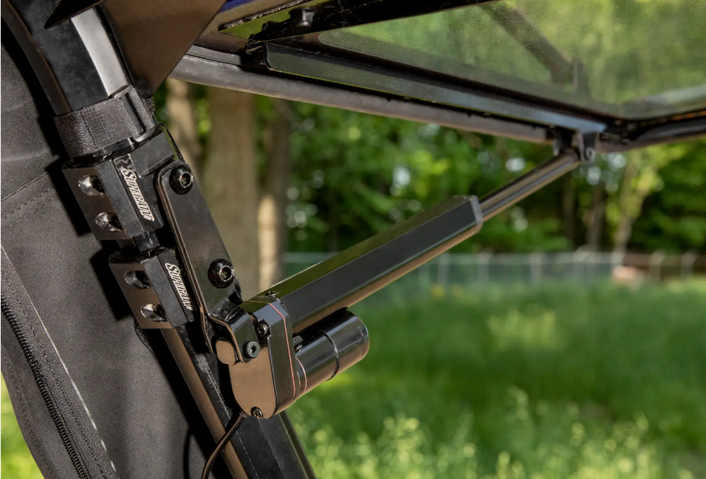 We are known for the quality of our windshields, and this windshield is no different—every part is made with performance in mind. You can count on our high-strength electric actuators to do all the heavy lifting, and hold your windshield into position no matter how rough the terrain gets. Our heavy-duty clamps keep this windshield in place and give you the rattle-free ride that you love. And our printed black borders hide all the hardware, leaving you with a sleek automotive finish.