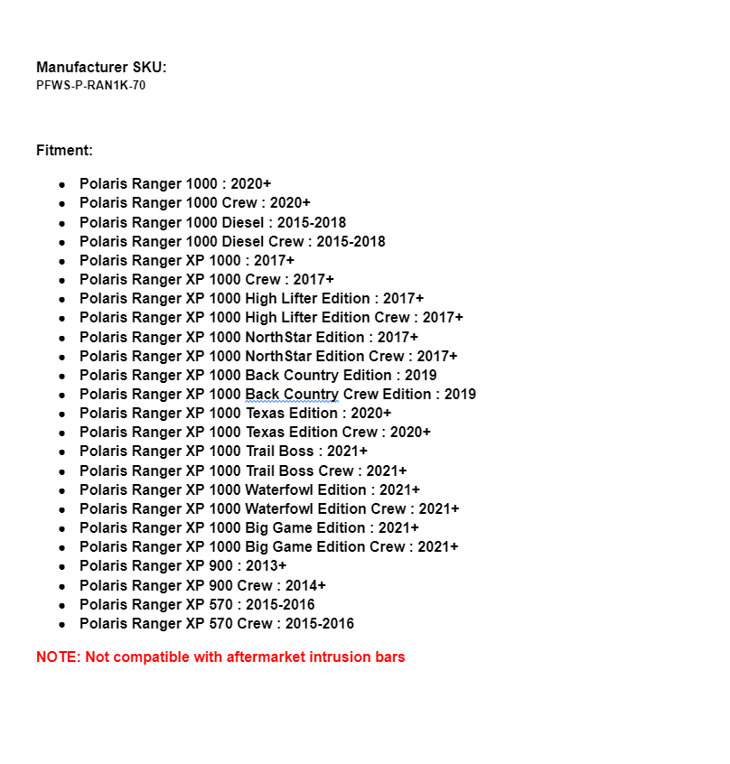 - Polaris Ranger 1000 : 2020+